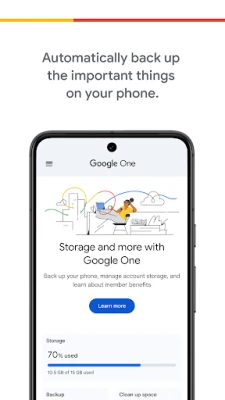 Cu Google One, beneficiezi de backup automat securizat pentru toate fișierele importante de pe telefon. Gestionează simplu și eficient spațiul tău de stocare în cloud-ul Google, menținând datele și amintirile prețioase în siguranță și accesibile oricând.