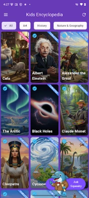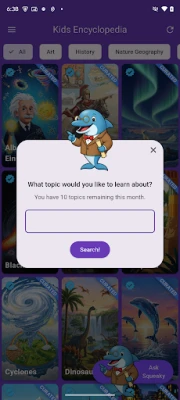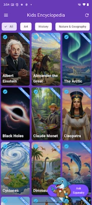 Explorați lumea vastă a cunoașterii cu această enciclopedie interactivă, special creată pentru copii. Descoperiți și învățați despre știință, istorie, natură, geografie, artă și tehnologie. O resursă educativă excelentă, care stimulează curiozitatea și oferă o perspectivă amplă asupra diverselor domenii.