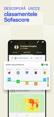 Ceea ce diferențiază Sofascore este angajamentul său pentru viteză și precizie absolută. Primești notificări instantanee și actualizări flash, asigurându-te că ești mereu primul care cunoaște evoluția scorurilor și a evenimentelor cheie. Aprofundează-te în performanțele jucătorilor cu statistici granulare despre goluri, asistențe și momente cruciale. Platforma îți oferă o imagine clară a dinamicii fiecărei confruntări, prezentând ratinguri bazate pe peste 300 de indicatori statistici avansați, grafice de putere și hărți de căldură, la fel ca analiștii profesioniști. Compară direct echipele și jucătorii cu funcția Head-to-Head pentru o analiză strategică inegalabilă.