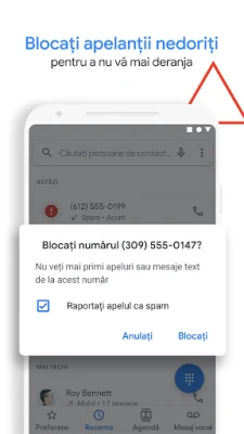 Transformă-ți modul de comunicare cu Aplicația Telefon, partenerul esențial pentru gestionarea inteligentă a apelurilor. Spune adio intrușilor telefonici – fie că sunt spammeri agresivi, telemarketeri persistenți sau escroci vicleni. Cu o protecție antispam de top, Aplicația Telefon te avertizează proactiv și îți permite să blochezi definitiv numerele perturbatoare, asigurându-ți liniștea. Mai mult, datorită bazei de date extinse de la Google, vei ști întotdeauna cine te apelează. Răspunde cu certitudine, recunoscând instantaneu companiile și contactele importante, evitând astfel ghicitul și apelurile pierdute.